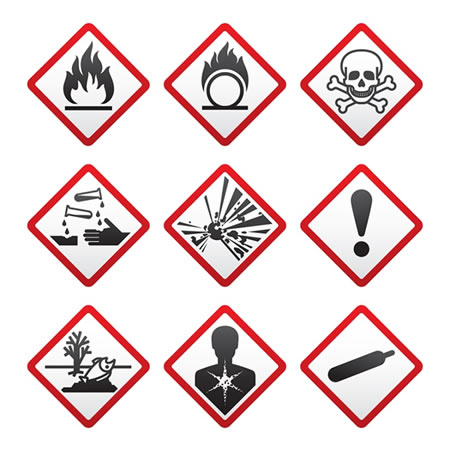 - GHS ha desarrollado una serie de nueve pictogramas para usar en las etiquetas.